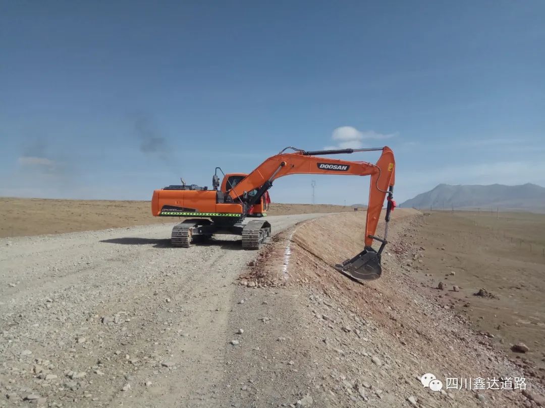 五月,阳光灿烂,神州处处风光无限美,地处海拔4000米左右的青海项目开始进场,涉及人员共计46人,其中管理人员5人,进场有挖掘机、装载机,运输车等十余台设备。工程量包含砂砾石垫层,路基填方,边沟,护坡等,在机器的轰鸣声中感受经济的“脉动”。
