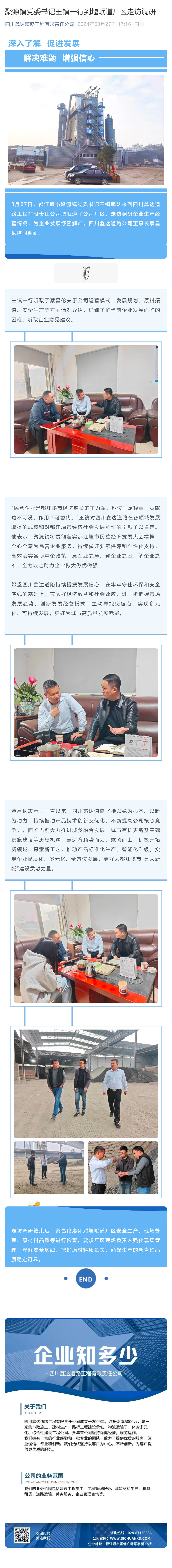 聚源镇党委书记王镇一行到堰岷道厂区走访调研